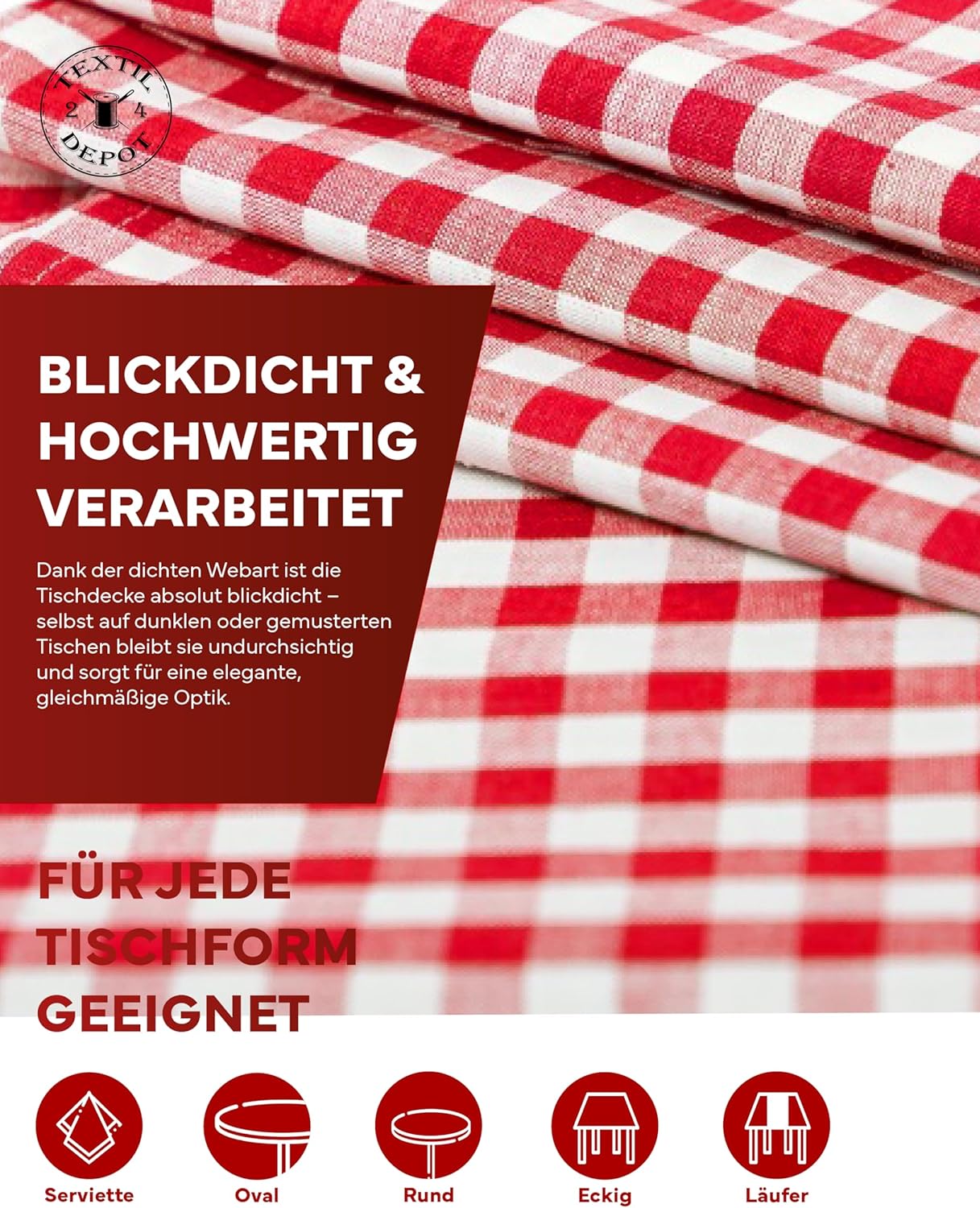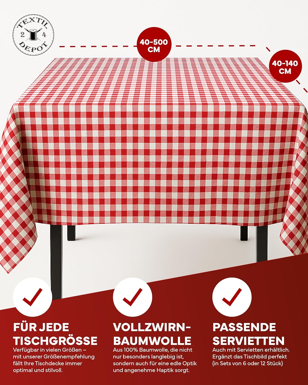 Unsere Landhaustischdecken mit 5mm Karo aus 100% Baumwolle sind die perfekte Ergänzung für eine gemütliche und rustikale Tischdekoration. Erhältlich in verschiedenen Karogrößen und Farbkombinationen, darunter klassisches Rot-Weiß und zeitloses Blau-Weiß, bieten sie vielfältige Möglichkeiten, um Ihren Esstisch stilvoll zu gestalten.
